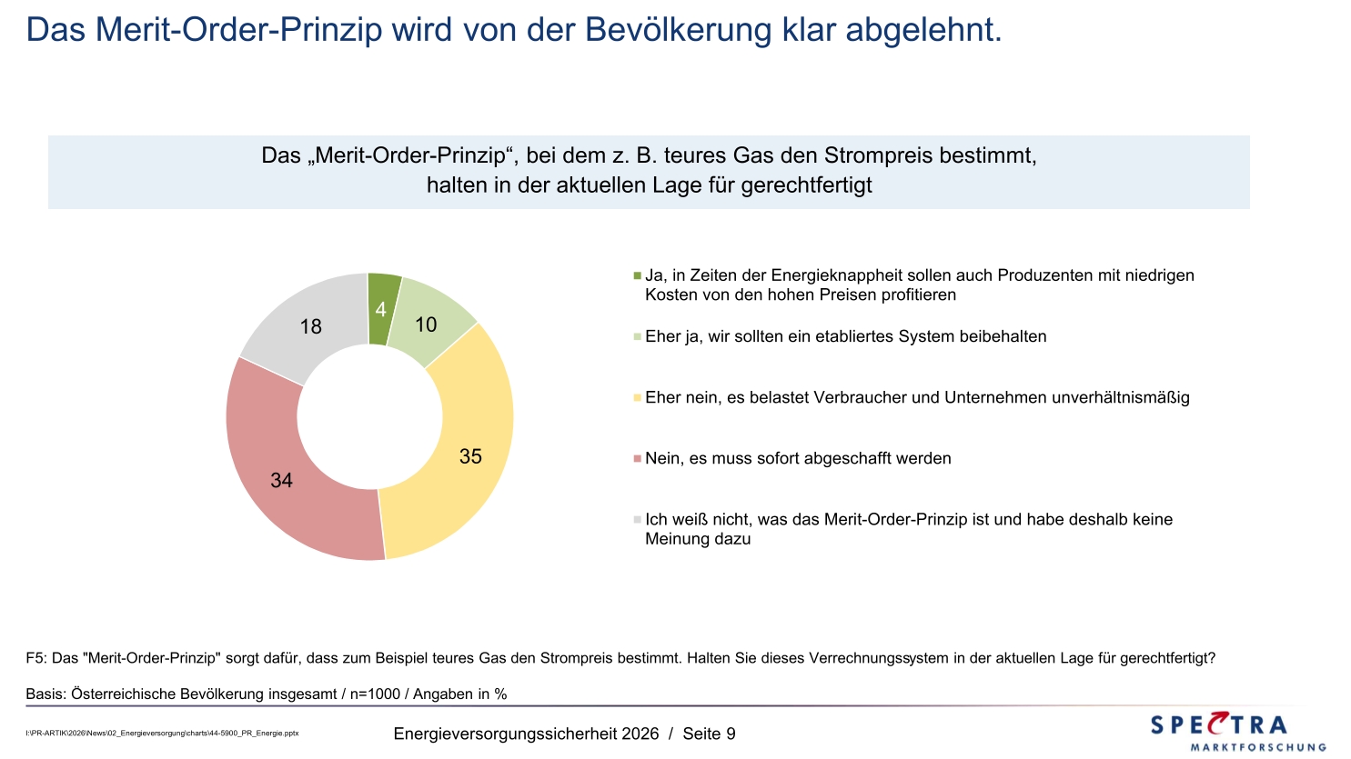 - Das Merit-Order-Prinzip (Preisbildung nach dem teuersten Kraftwerk) erfährt mit 69% Ablehnung eine klare Absage durch die Bevölkerung.