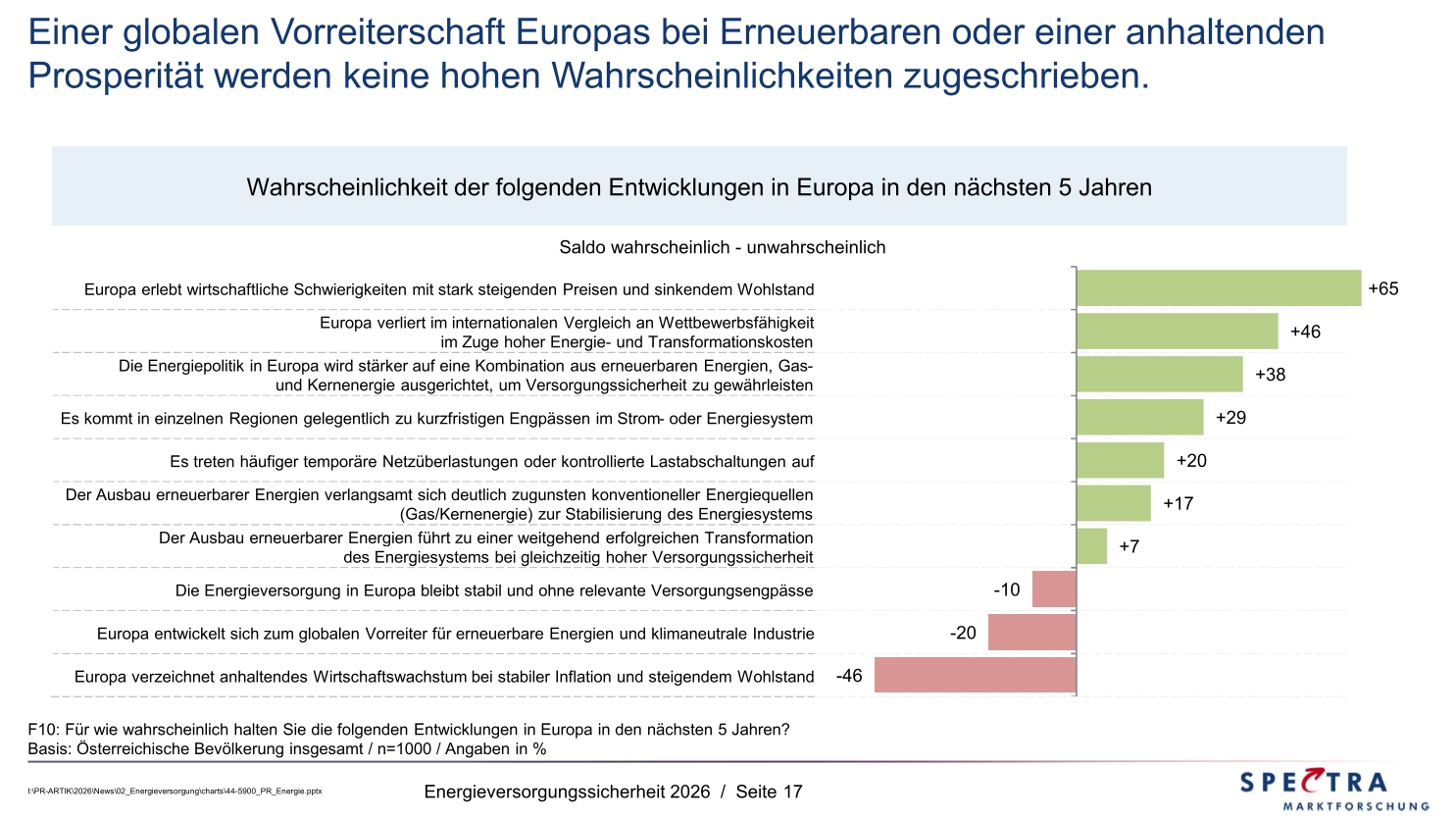 - Nur eine Minderheit von 36% glaubt noch an das Szenario einer europäischen Vorreiterrolle bei klimaneutralen Energien.