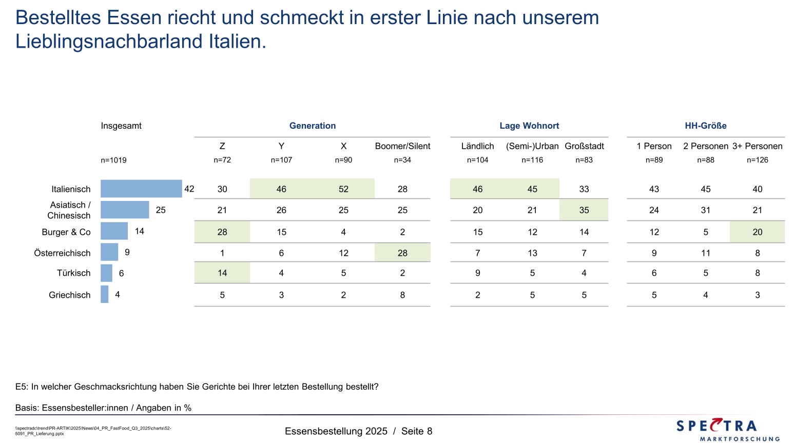 - 25% haben generationenübergreifend asiatisch / chinesisch bestellt.
